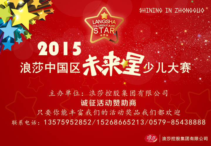 2015年10月10日,浪莎控股集團(tuán)開展了2015浪莎中國(guó)區(qū)美腿”、“男神女神”、“未來星”超級(jí)pk大賽,本次活動(dòng)主要是針對(duì)全國(guó)愛美女士(16~35歲),愛自拍的男女(16~30歲)和小朋友(0~12歲)。針對(duì)此次大賽浪莎集團(tuán)也為宗偉選手設(shè)置了超級(jí)大賽一等獎(jiǎng)、二等獎(jiǎng)、三等獎(jiǎng)、人氣獎(jiǎng)、以及獲得1000票的選手。