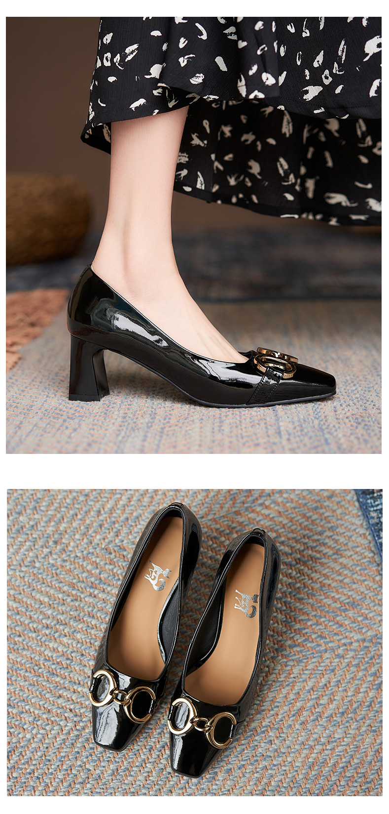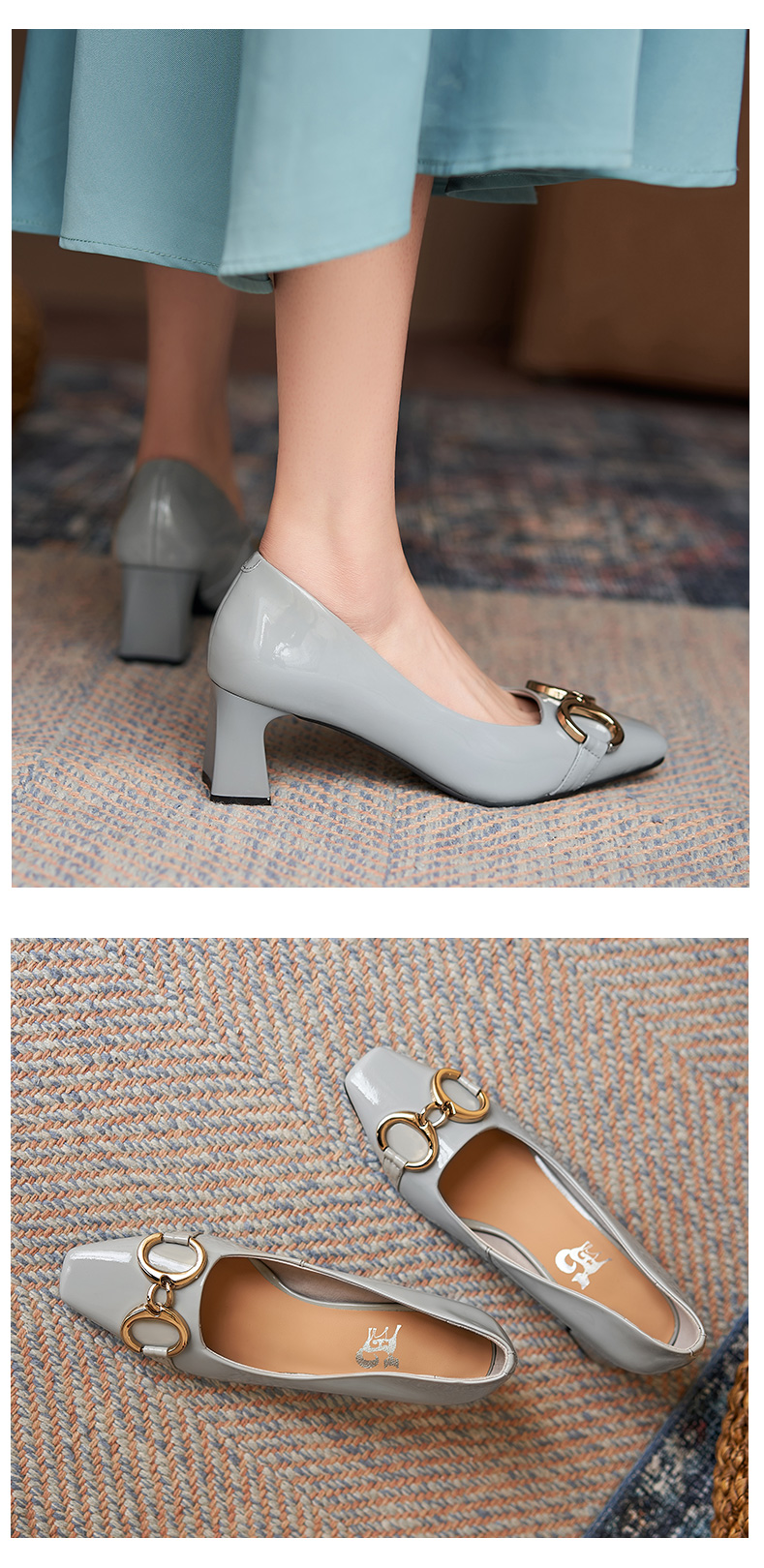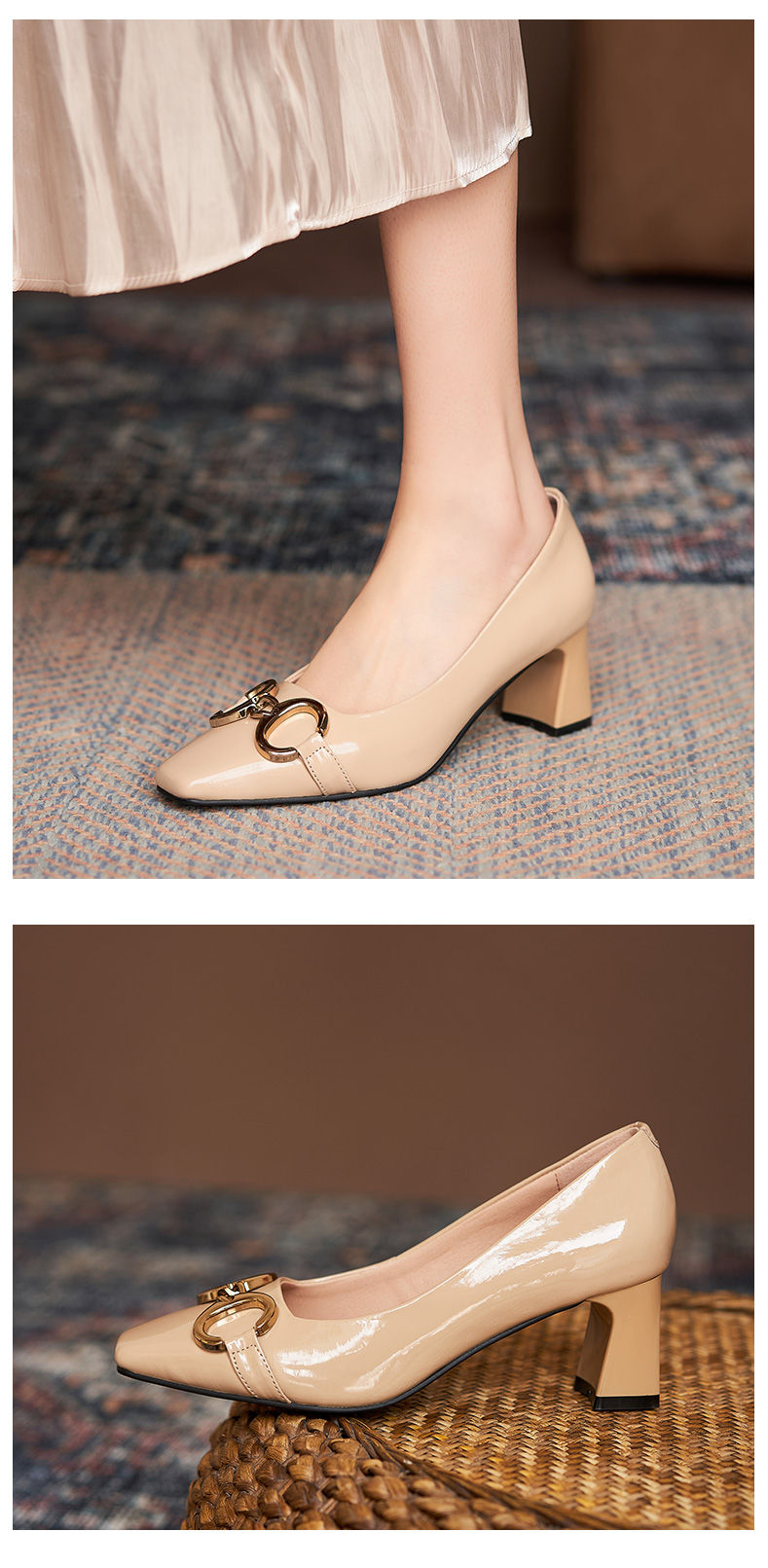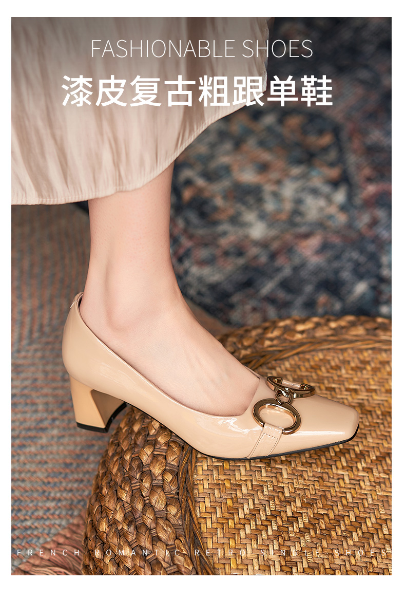 淺口高跟鞋女春夏鞋子2021新款英倫小皮鞋一腳蹬方頭真皮粗跟單鞋