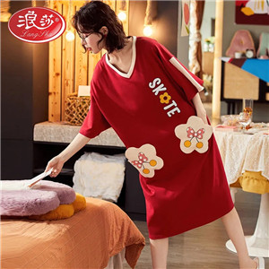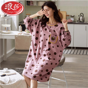 浪莎秋季純棉睡裙韓版可愛(ài)清新甜美寬松時(shí)尚睡裙女舒適長(zhǎng)袖可外穿