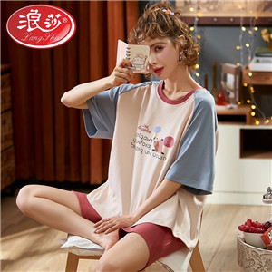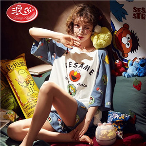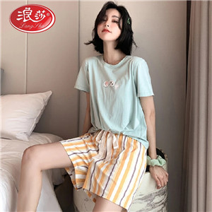 浪莎純棉睡衣女士夏季薄款短袖短褲可愛(ài)日系兩件套裝可外穿家居服
