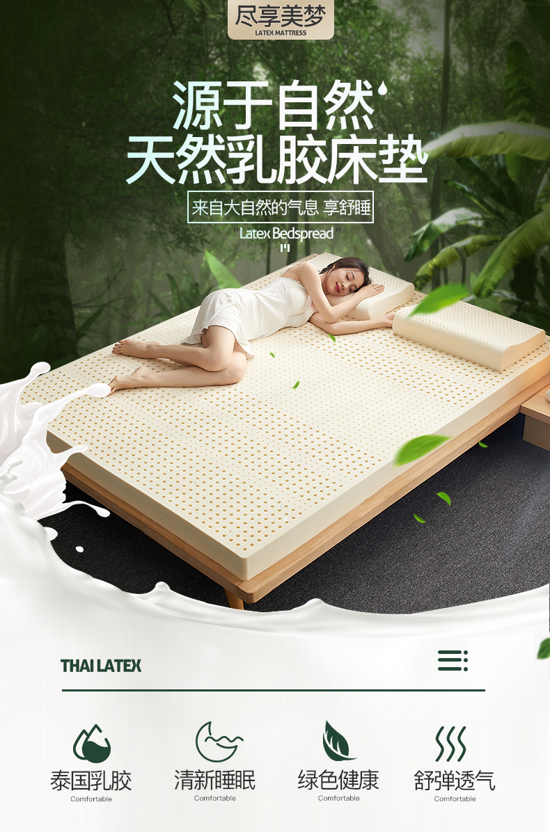 浪莎乳膠床墊泰國天然橡膠1.8m床純10cm席夢思兒童1.5米5cm進口