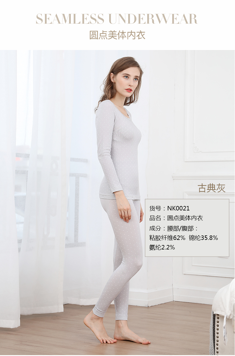 浪莎無縫提花美體保暖內衣套裝女士緊修身薄款秋衣秋褲性感打底冬