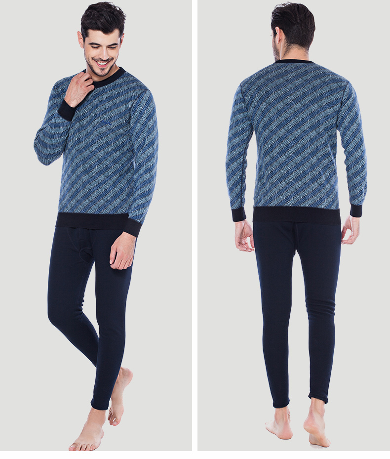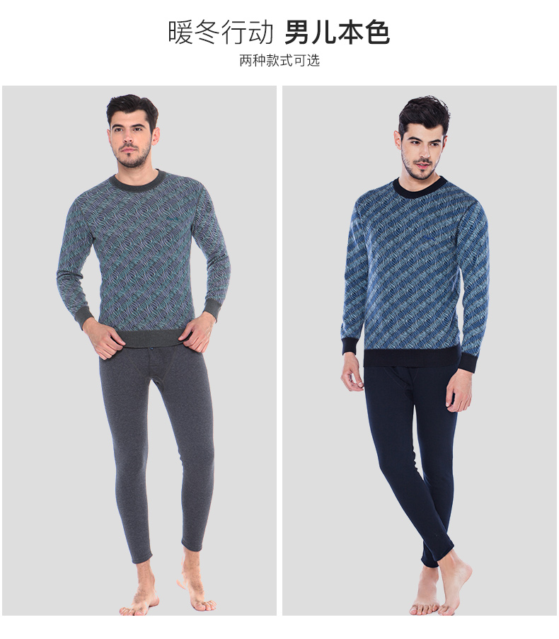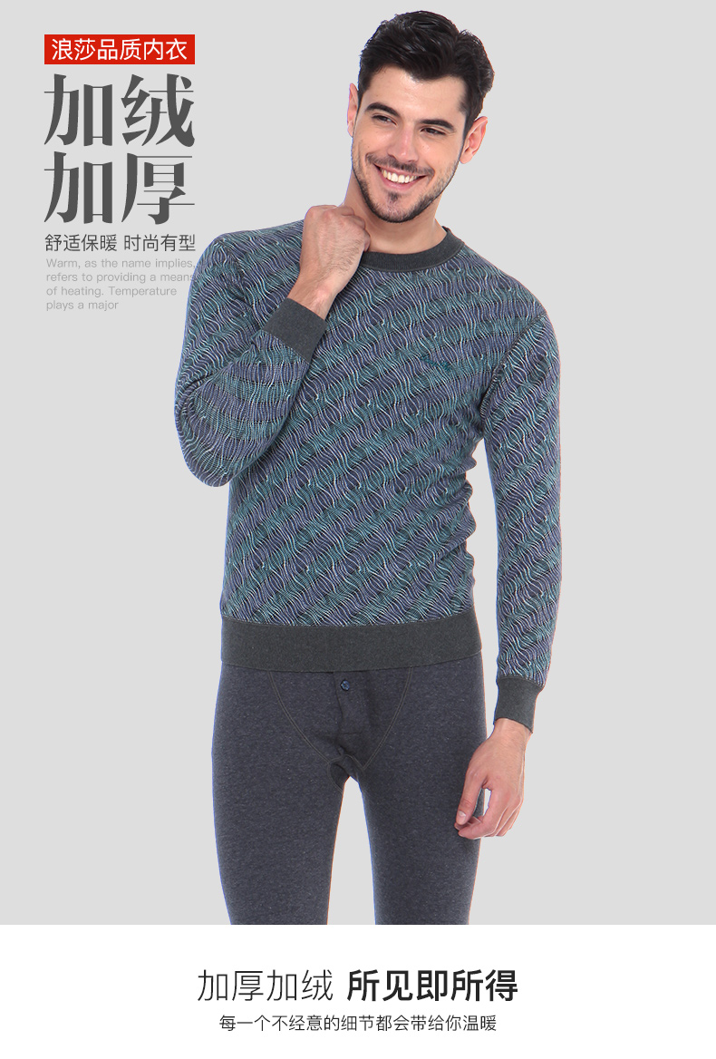 浪莎條紋個性保暖內(nèi)衣男士加厚加絨中老年人爸爸冬季秋衣秋褲套裝